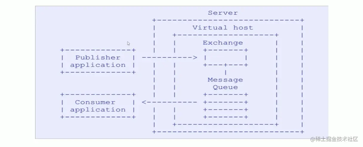 Piblisher Application:生产者Exchange:交换机Virtual host:虚拟机Message Queue:消息队列Conbsumer Application:消费者