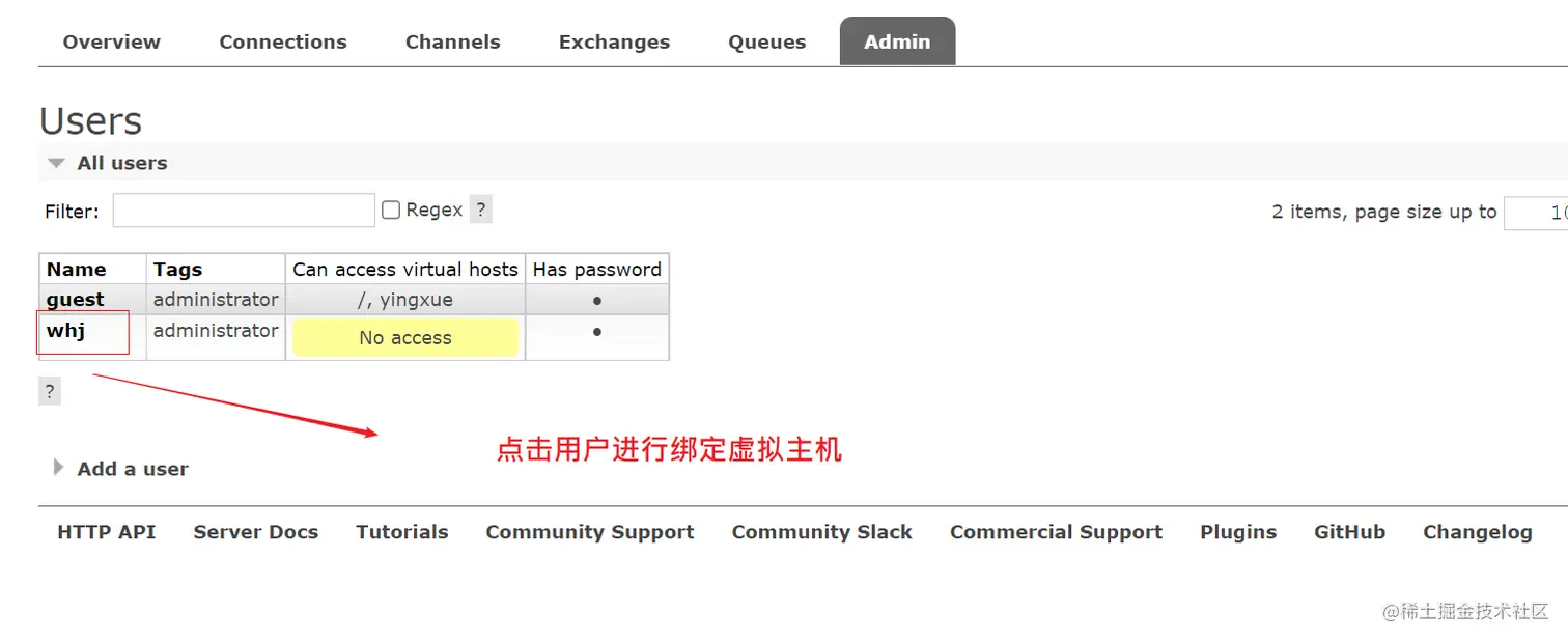 创建好虚拟主机,我们还要给用户添加访问权限: