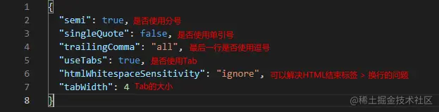 .prettierrc文件,填充内容如下(注意样式要和ESLint配合,不然会起冲突): -