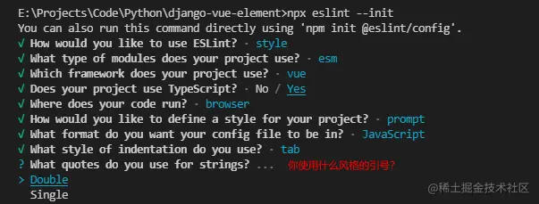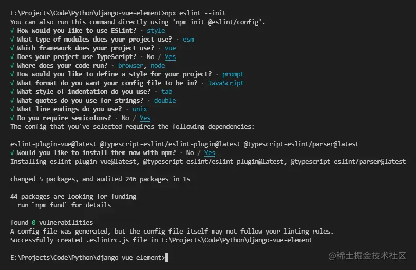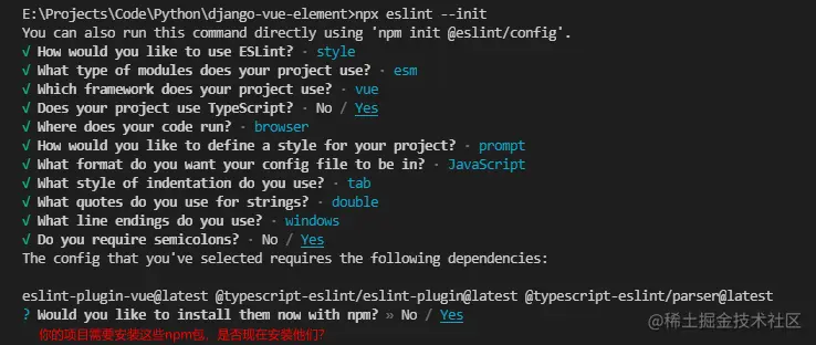 npx eslint --init初始化eslint的配置文件如果出现安装报错,那就是你开头刚建完项目时没有