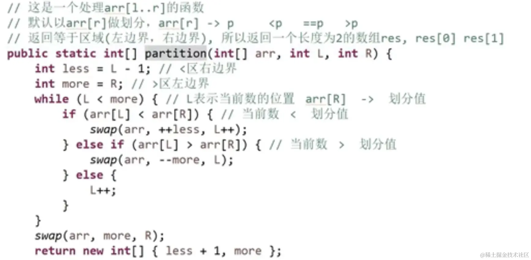 怎么把一组数做划分 左边都小于它 右边都大于它 中间都等于它