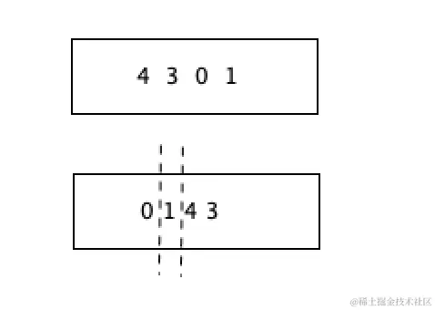 接下来在左侧区域 4301上以最后一个元素1做划分重复该行为