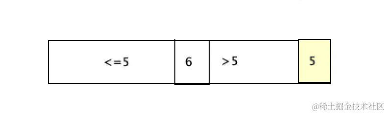 最后一个元素5和大于区域的第一个元素6做交换