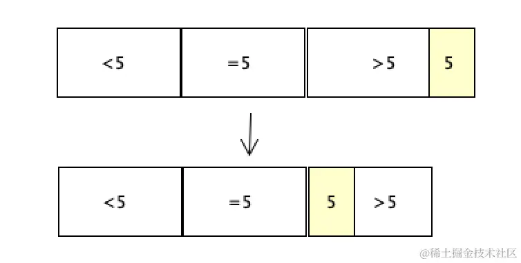 整个数组就变成 等于5的区域在中间