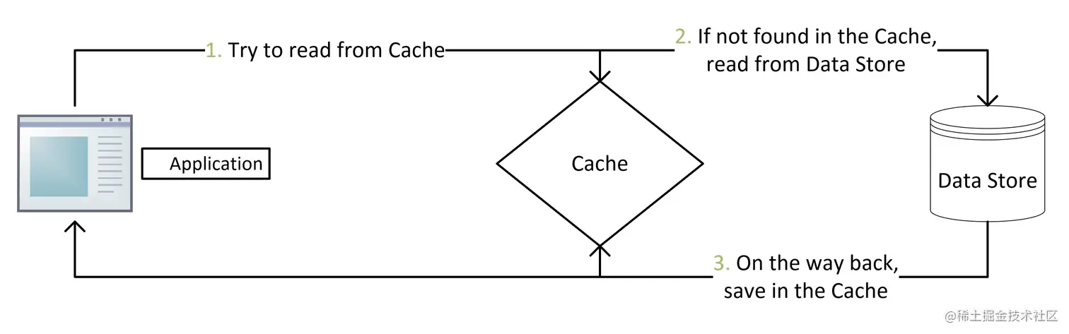 先查询缓存中数据是否存在,如果存在则直接返回,如果不存在,则由缓存组件负责从数据库中同步加载数据.