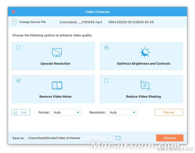 这个视频质量增强器是一个了不起的工具,它使您能够提高视频的分辨率、消除视频噪声、减少视频抖动以及优化亮度和对比度。