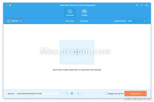 启动软件,然后单击左上角的“添加文件”按钮从您的计算机中选择 MKV 文件,然后单击“打开”继续。
