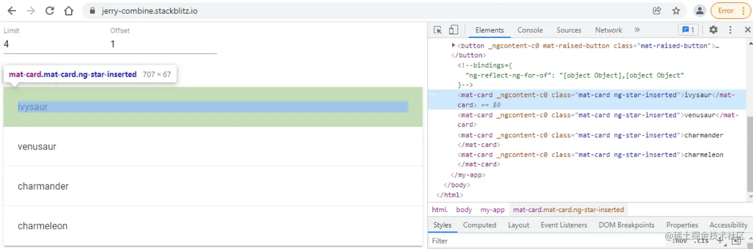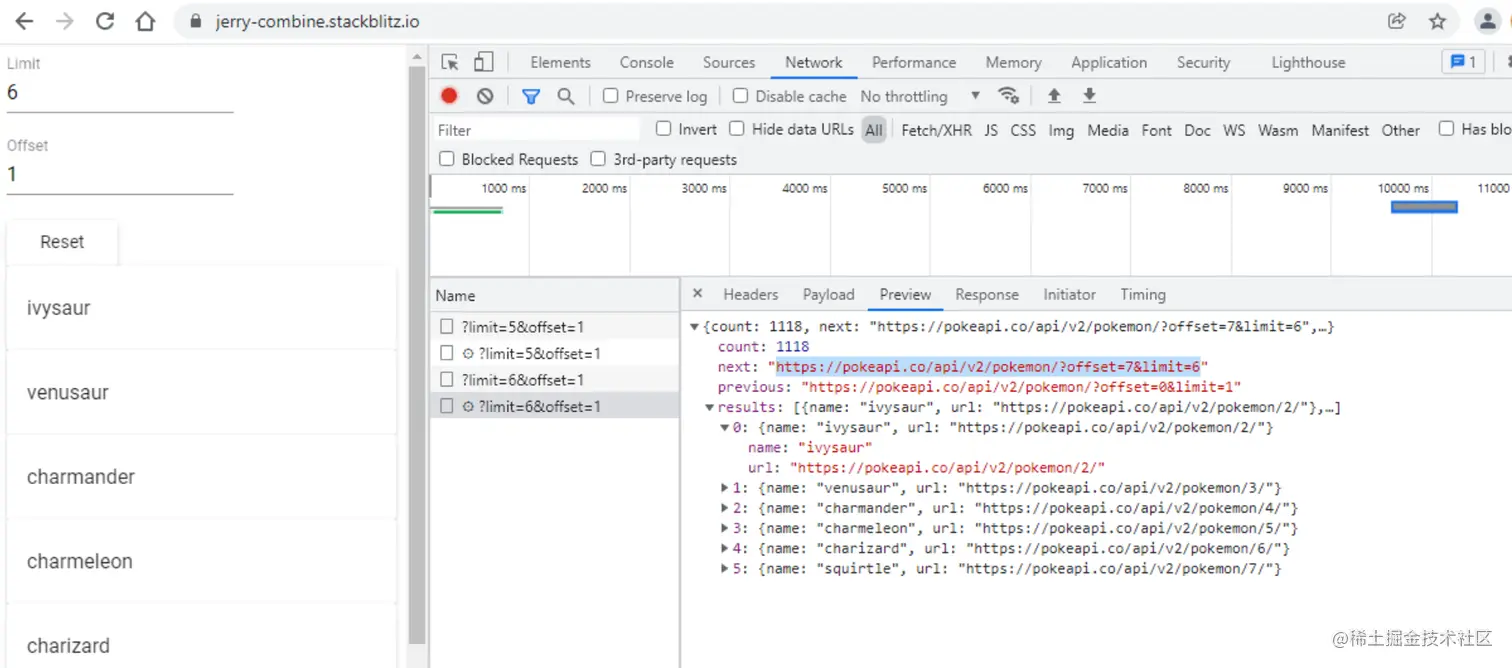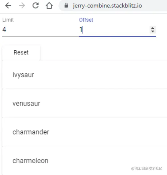 例如我将 offset 改为 1 时,显示的元素 从 ivysaur 开始: