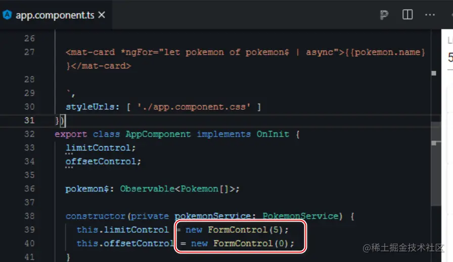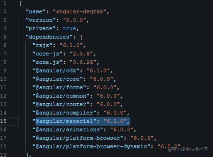 而 app 组件模板里使用的元素 mat-form-field 等等,来自 Angular material design module: