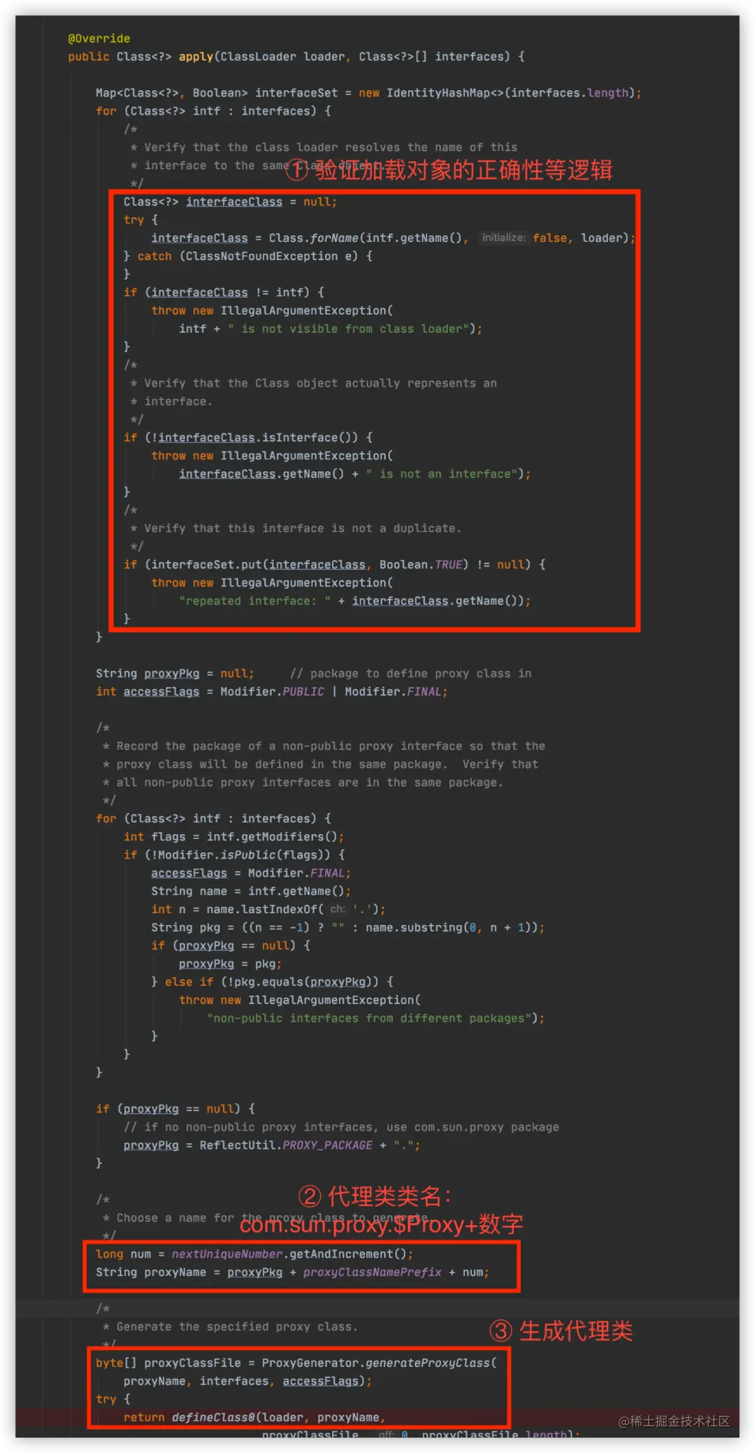 前面讲proxyClassCache的构造器入参时已经提到valueFactory对应的就是ProxyClassFactory。valueFactory.apply其实对应的是ProxyClassFactory#apply。