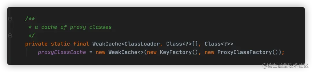 proxyClassCache是一个本地静态变量也是一个缓存cache,其构造器的两个入参KeyFactory和ProxyClassFactory至关重要,分别对应keyFactory和valueFactory: