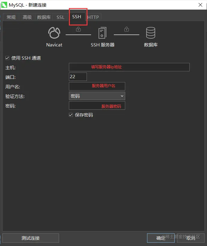 配置常规后,点击测试连接,提示连接成功后,点击【确定】即可
