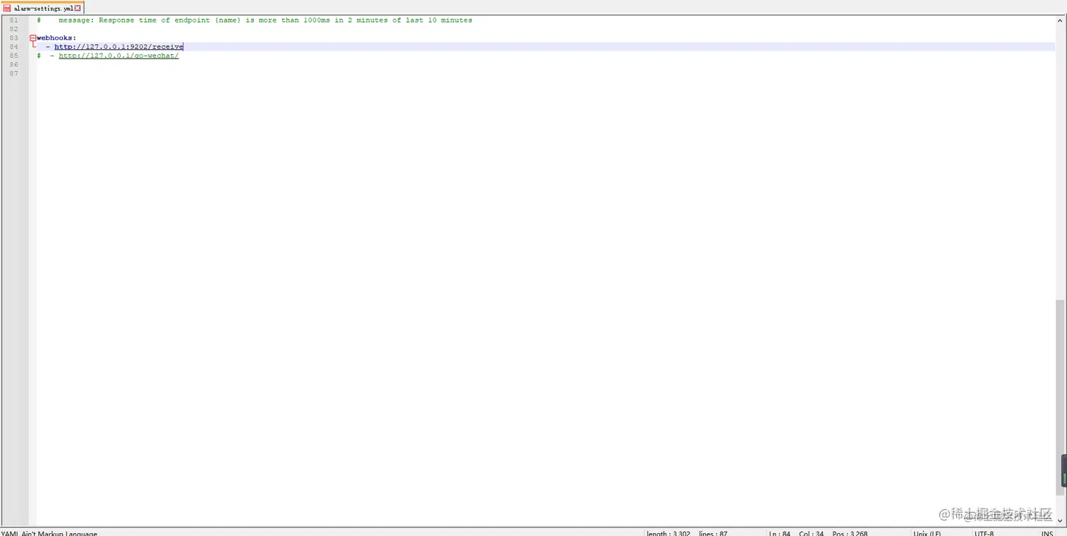 告警功能其核心由一组规则驱动而来,这些规则定义在config/alarm-settings.yml文件中