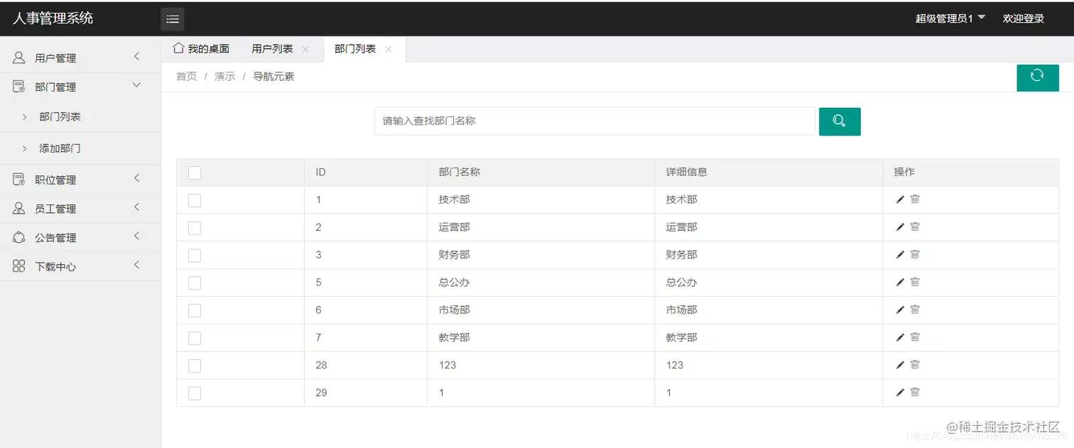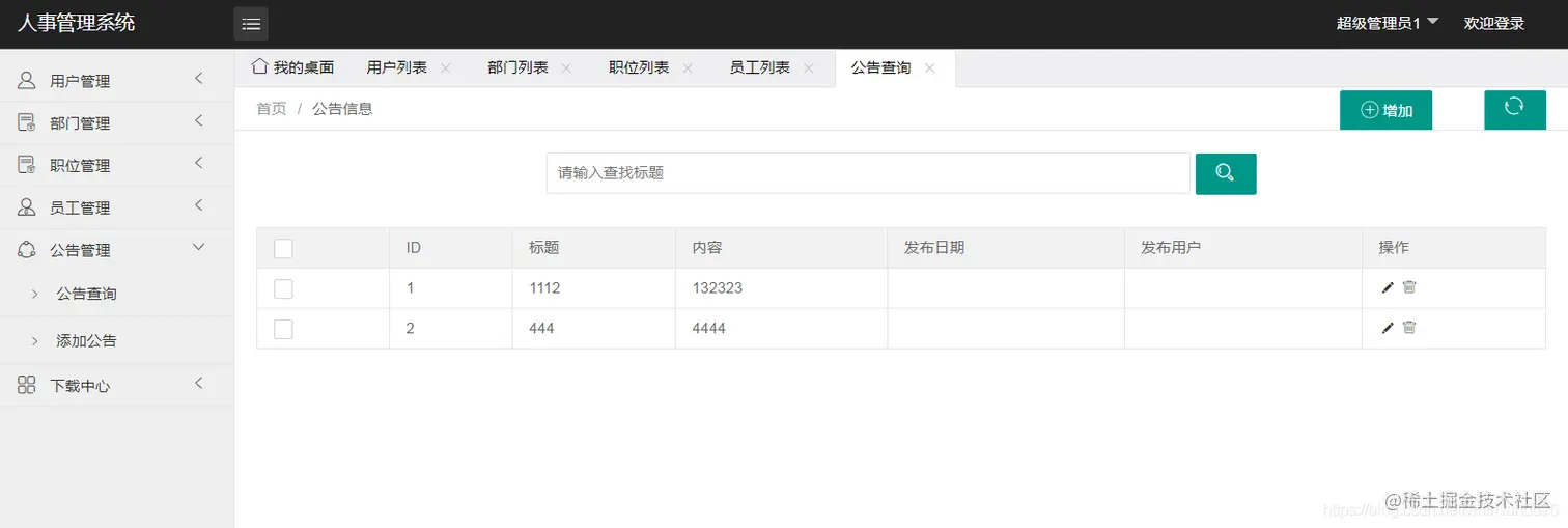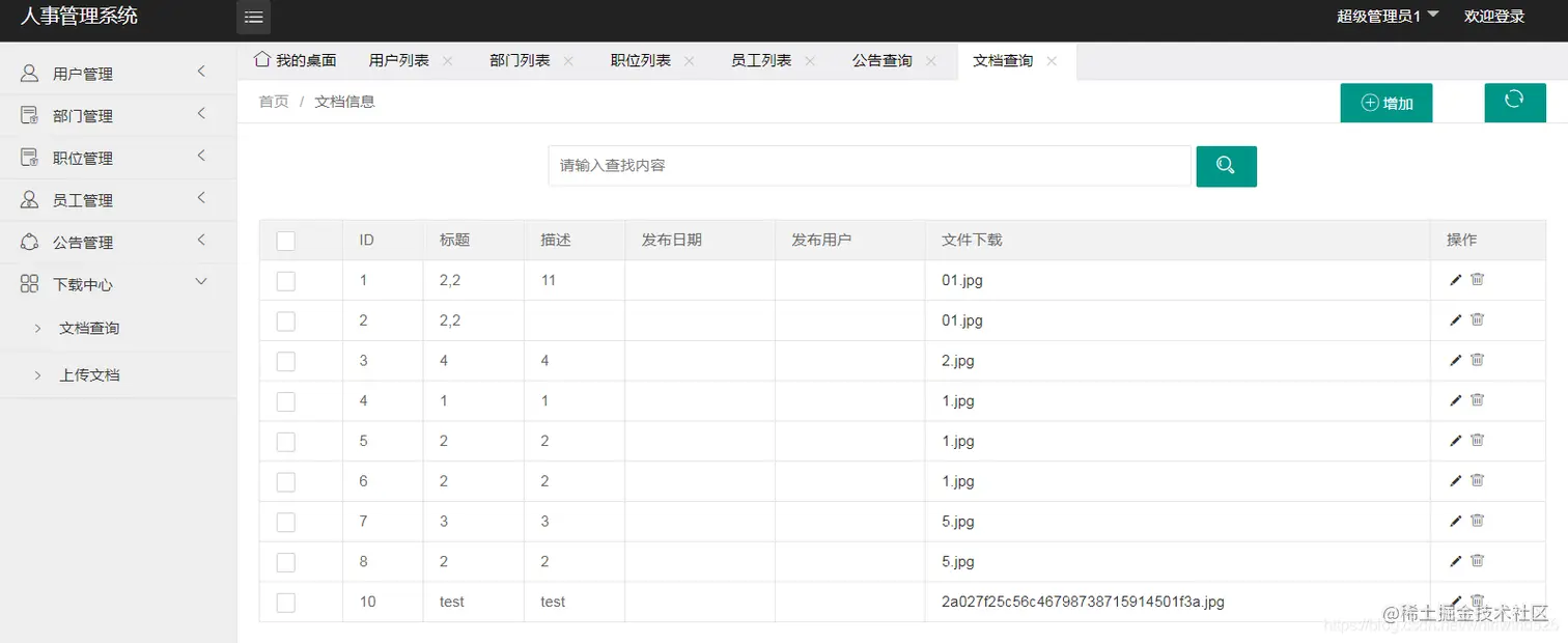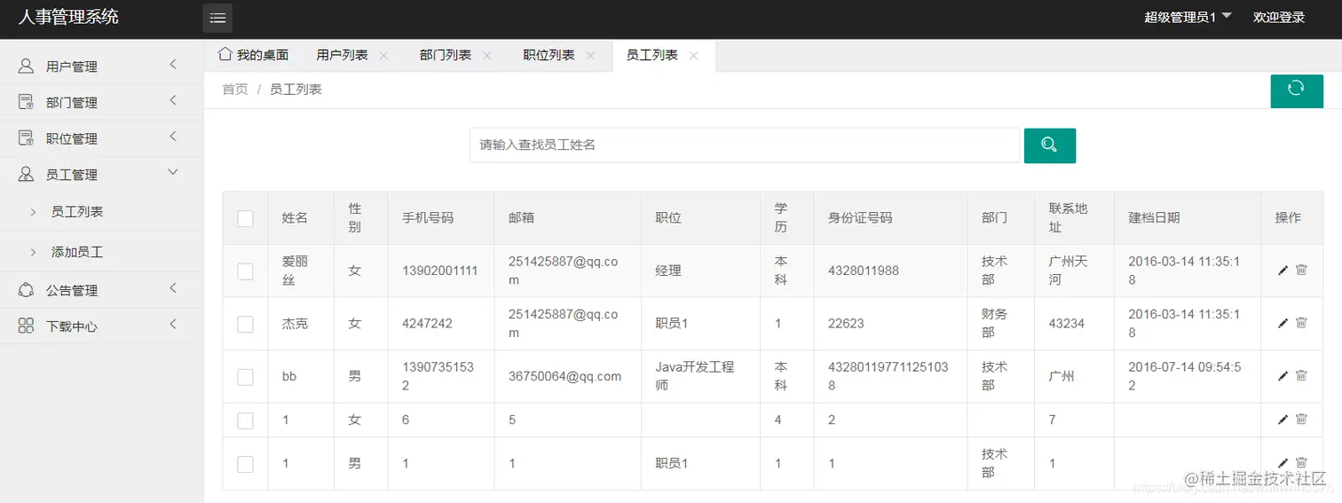 此系统基于SSM框架开发,主要实现公司HR人事管理相功能:主要包含 部门管理,职位管理,人员管理,系统用户管理,公告管理,文档管理等。系统分两个角色:一个是管理员角色,一个是员工角色,管理员角色进入后可以对相关的数据进行管理,员工角色进入后只能查看相关数据。