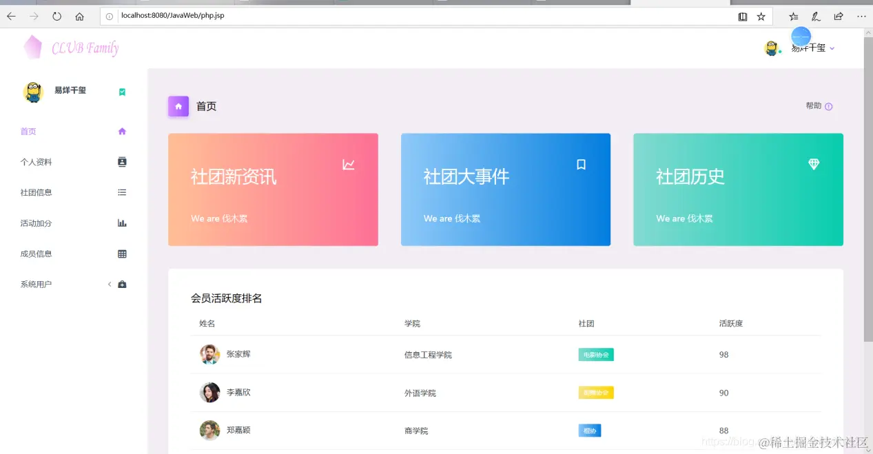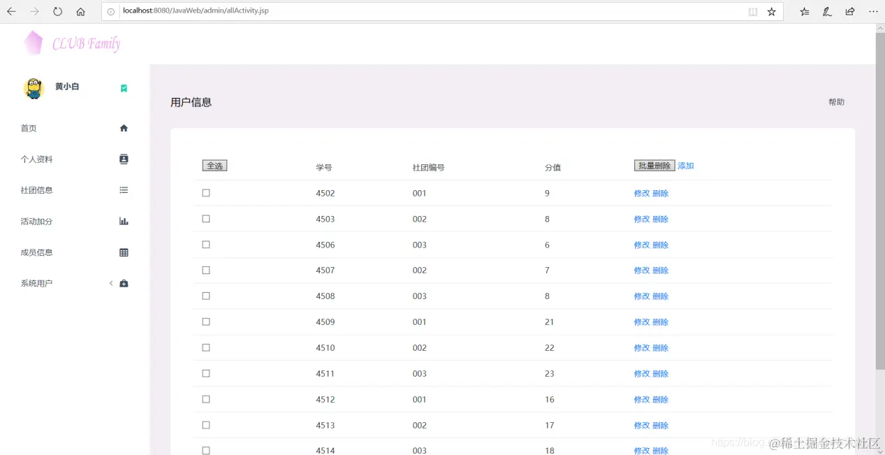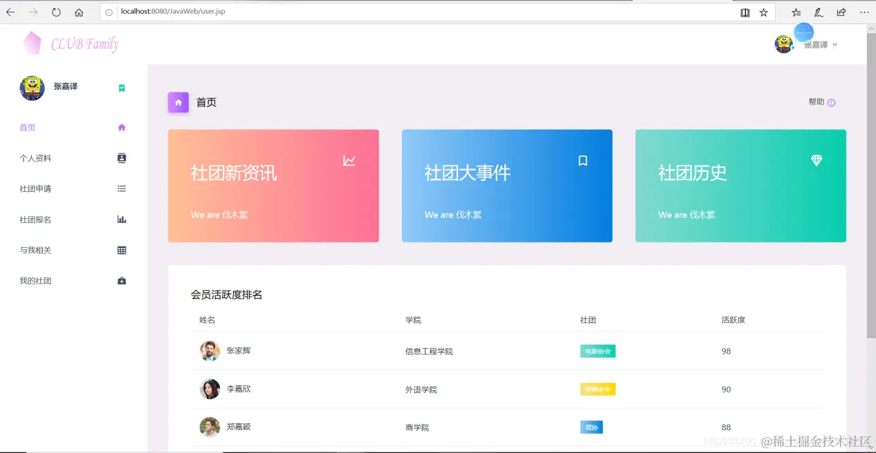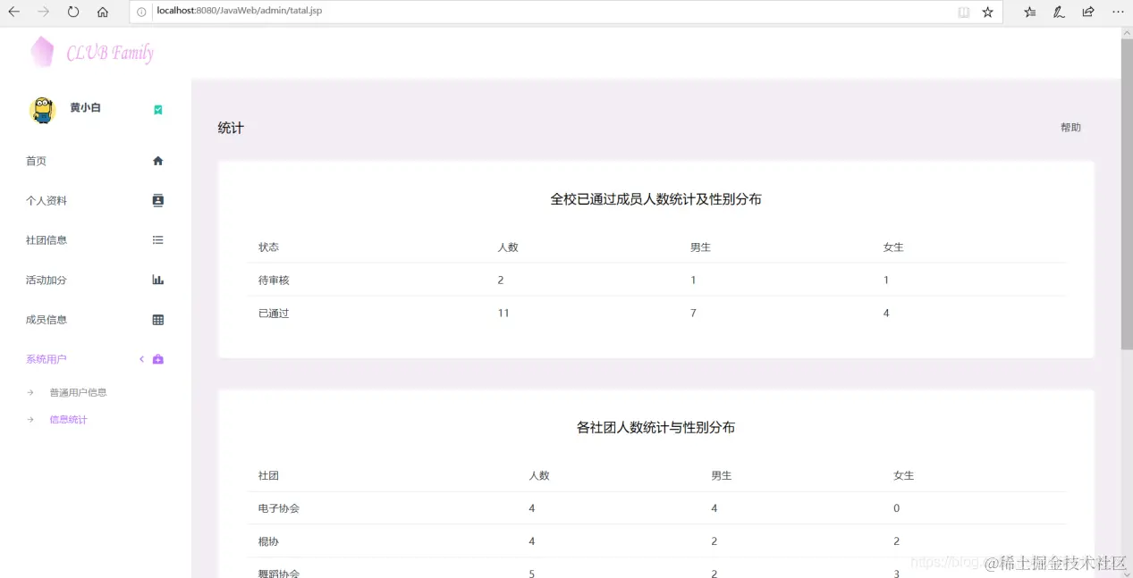 以上是基于JSP实现社团管理的部分功能展示。