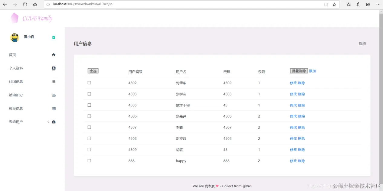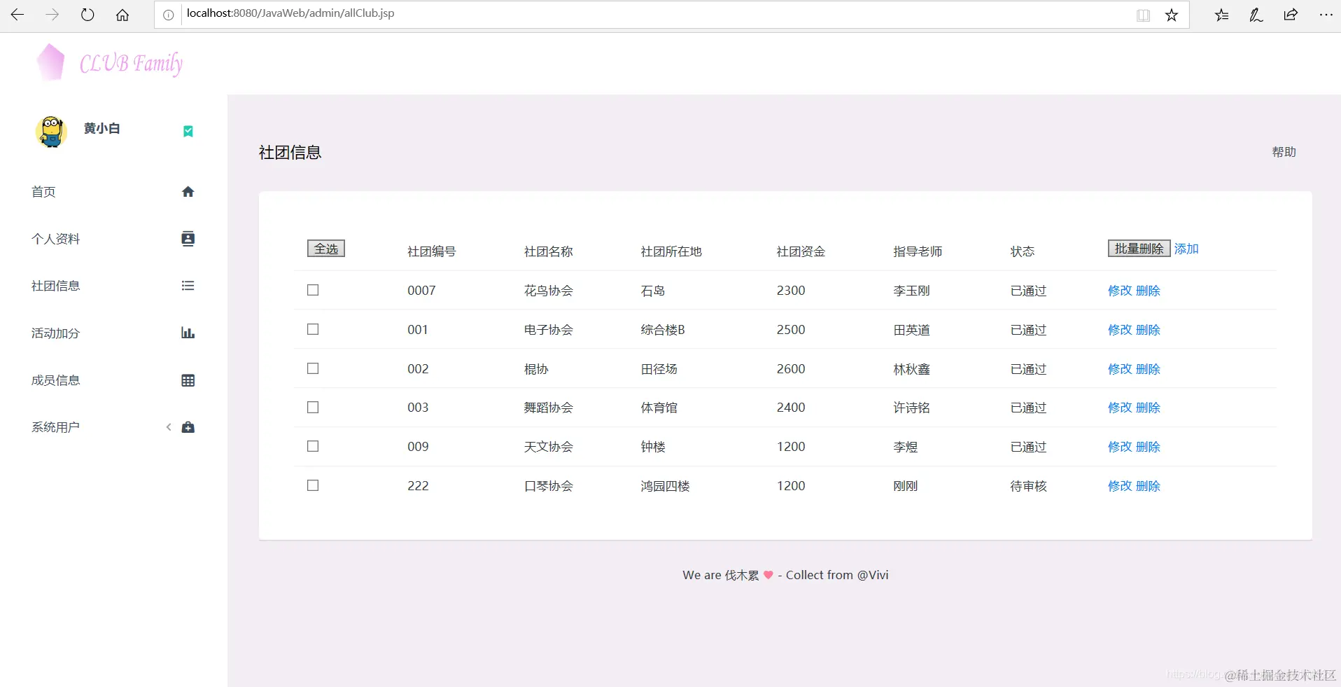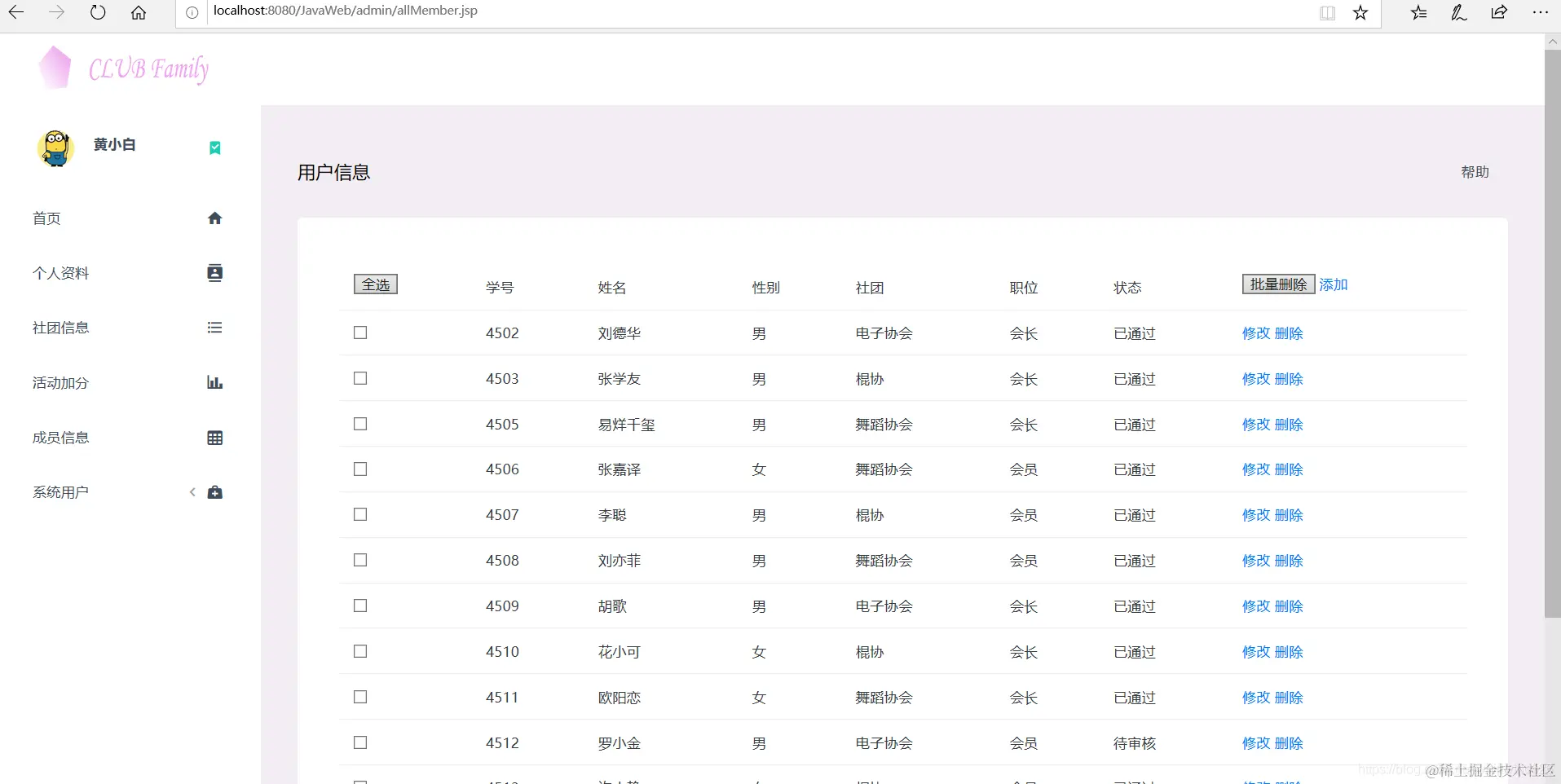 以上是基于JSP实现社团管理的部分功能展示。