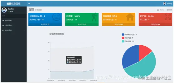 基于SpringBoot及thymeleaf搭建的疫情信息管理系统 疫情信息管理系统旨在通过信息化手段记录跟踪本地区密切接触者、受感染者、危重症病人、治愈者以及死亡者,以密切接触者为开始一直到感染者治愈或者死亡,记录其基本信息、感染源、核算记录以及发病情况等信息,在通过信息化可视化手段展示本地区疫情发展情况,统计各个人群的数量,每个人群所占比例。