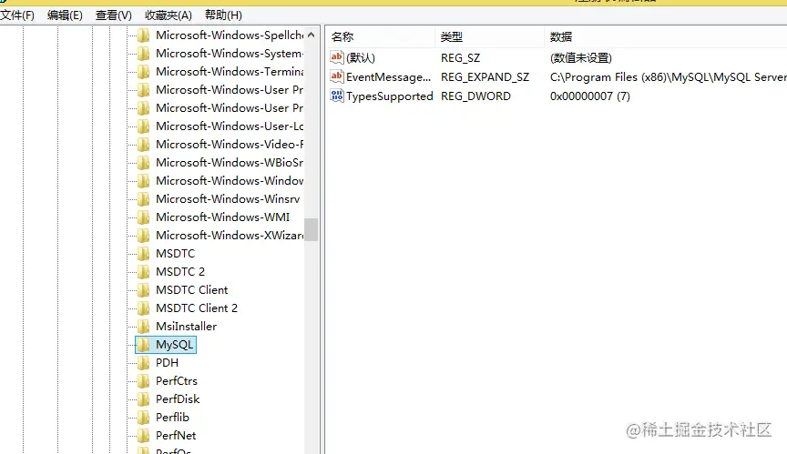 五、删除HKEY_LOCAL_MACHINE\SYSTEM\ControlSet002\Services\Eventlog\Application\MySQL文件夹,如果没有可以不用删除了。我的没有就没删