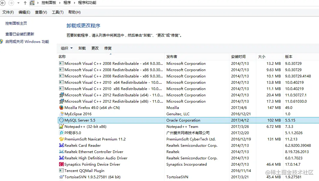 一、在控制面板中卸载mysql软件