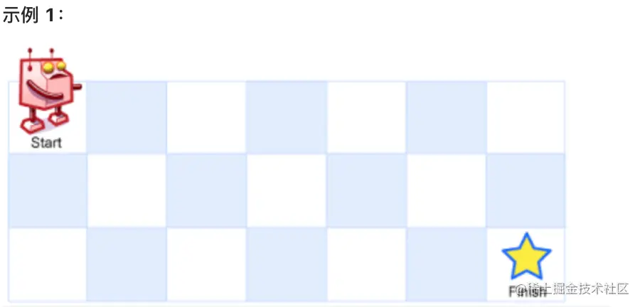 一个机器人位于一个 m x n 网格的左上角 (起始点在下图中标记为 “Start” )。