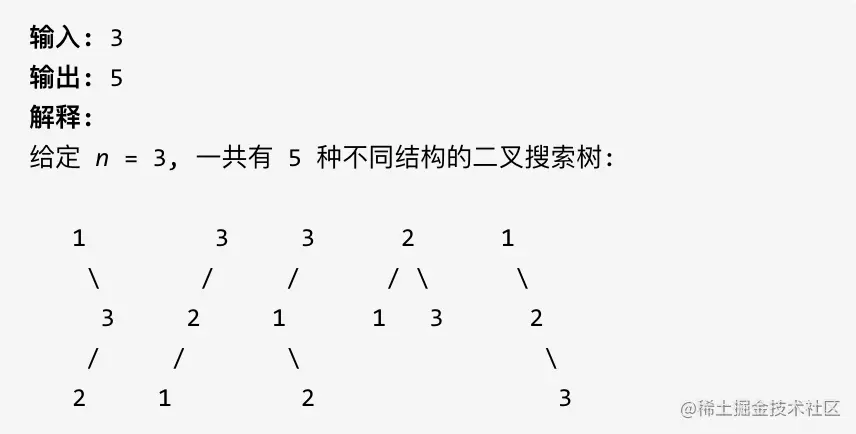 给定一个整数 n,求以 1 ... n 为节点组成的二叉搜索树有多少种?