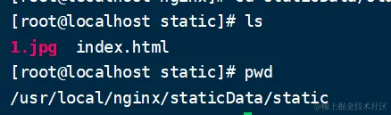 在nginx目录下创建/staticData/static目录,将静态文件放进去