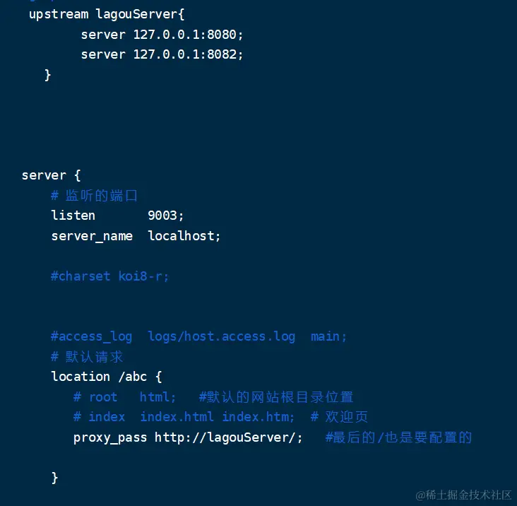 - 匹配路径前缀 location ^~/lagou {}