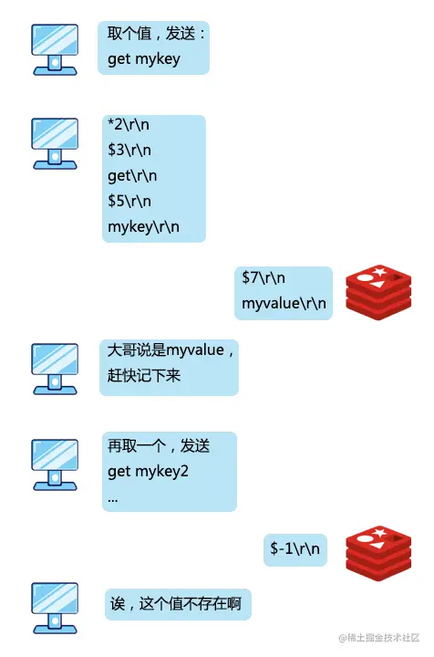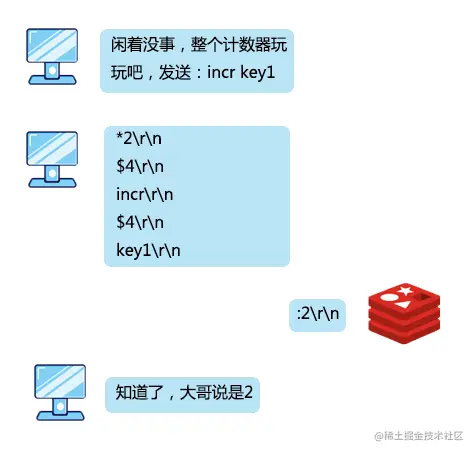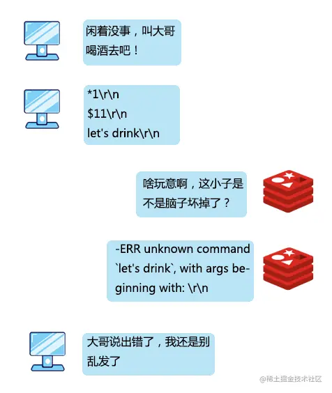 所以我建议你直接使用客户端发出一条向服务器的命令,然后取出这条命令对应的报文来直观的看一下。话虽如此,不过我已经被封装的很严实了,正常情况下你是看不到我内部进行通讯的具体报文的,所以,你可以伪装成一个Redis的服务端,来截获小弟们发给我的消息。