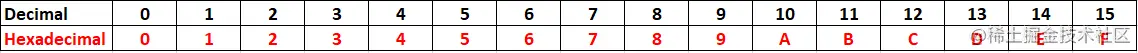 我们还可以使用十六进制值来表示 CSS 中的颜色,这也是我们用的最多的颜色表示方式。十六进制使用 16 个符号表示,使用 0 - 9 表示值 0 到 9,A - F 表示值 10 到 15,如下: