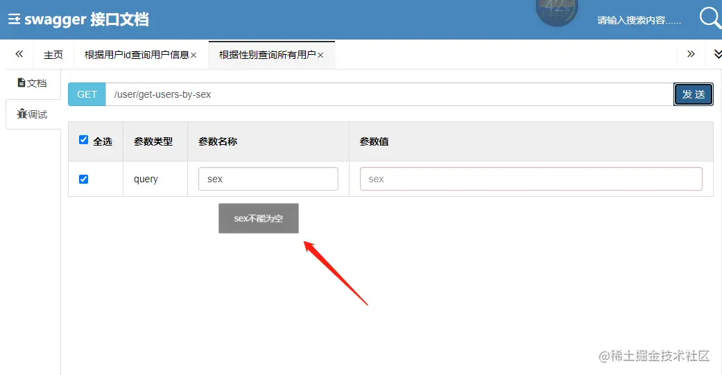 如上我就是制定了性别这个字段,你在通过swagger文档进行接口调用的时候,假设没传,你知道会出现什么问题嘛?聪明人都知道,不就提示字段为空,然后接口调用失败了嘛。