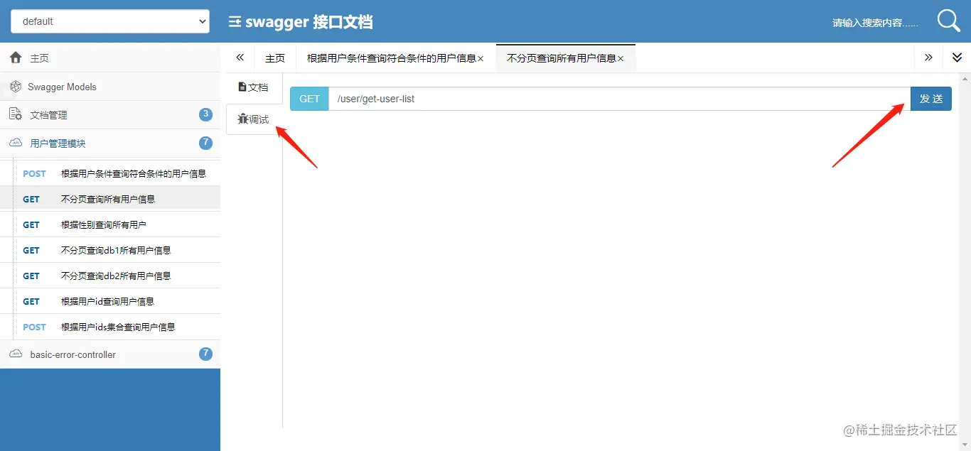 是不是很有postman的即视感,没错,在线调试也是被集成进去了。无论对自己还是前端开发都及其方便,毕竟测试接口很方便啊,不需要像postman输入完整访问路径等相关接口调用信息,一切操作都变得很简单。有没有?直接发送请求即可。