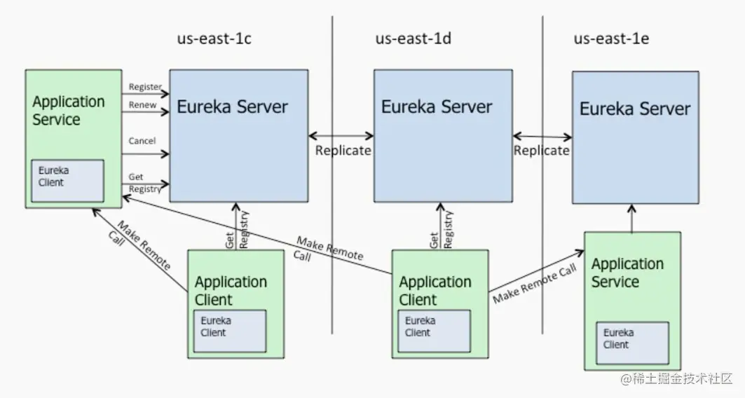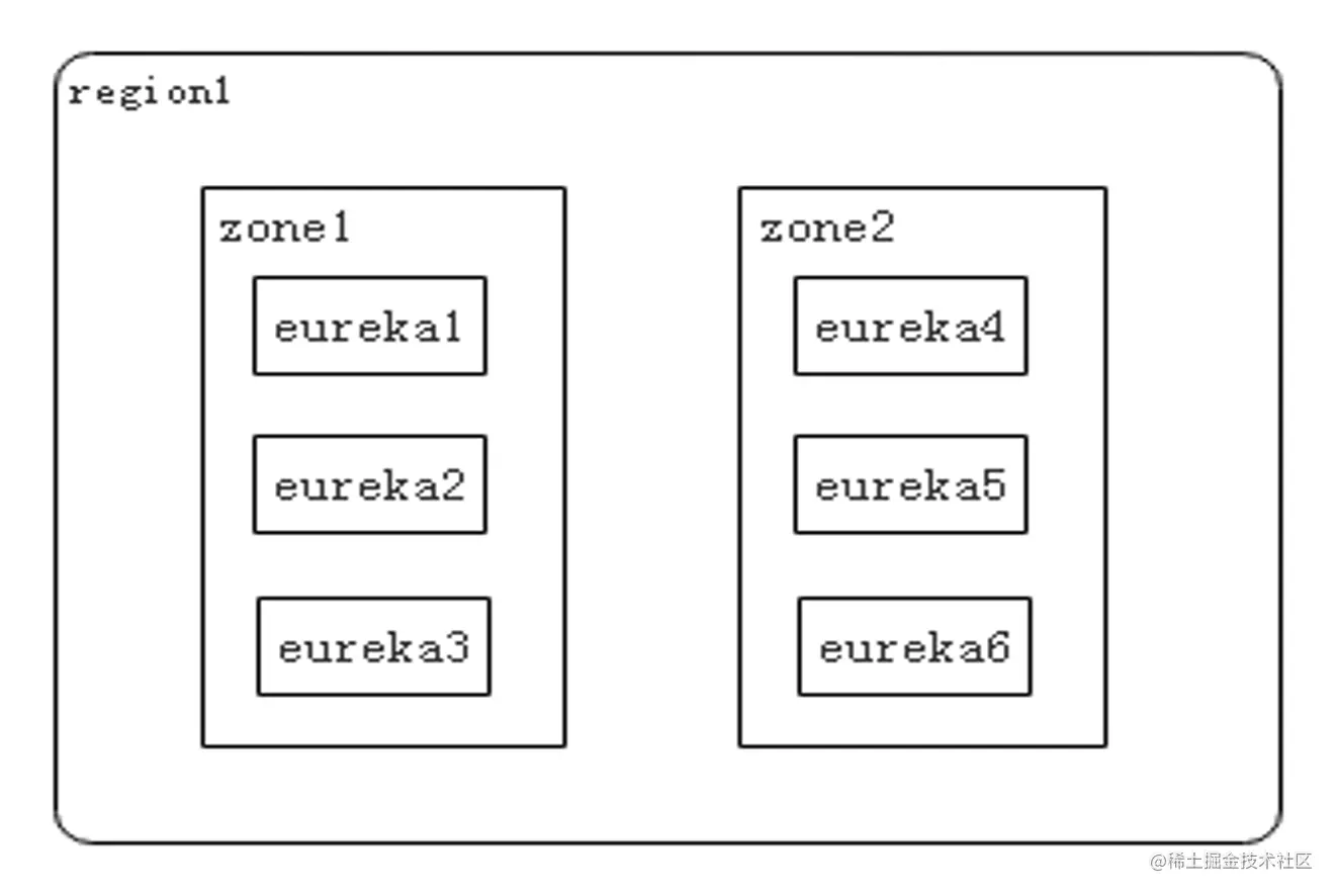 eureka提供了region和zone两个概念来进行分区,这两个概念均来自于亚马逊的AWS: