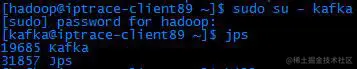 2)检查kafka 进程:用kafka 用户执行jps 查看