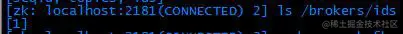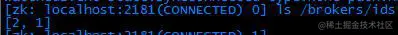执行ls /brokeRegionServer/ids,查看和 zookeeper 连接的kafka 进程: