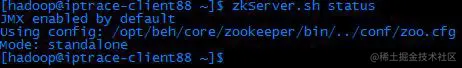 ②在 10.161.XX.XX 主机用 hadoop 用户执行zkServer.sh status