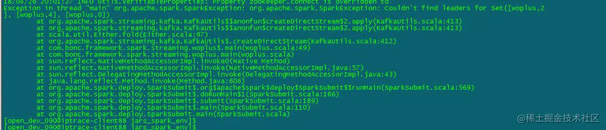 生产人员执行spark on yarn 任务,报错找不到leader: SparkException:Couldn’t find leader for set
