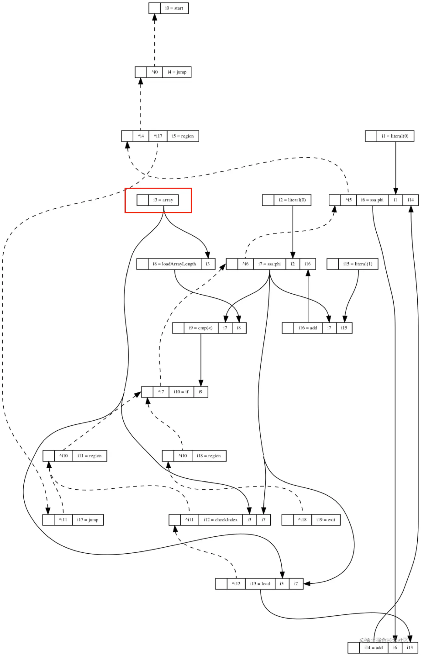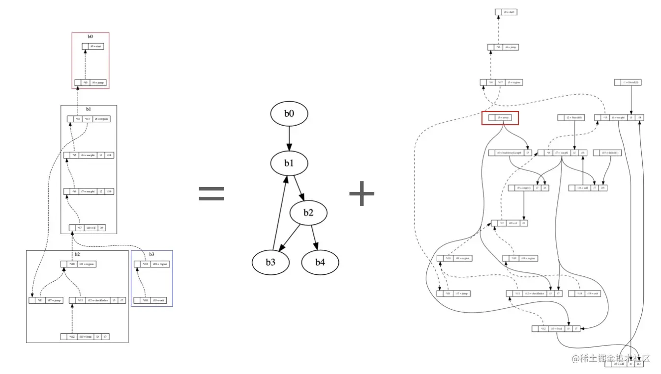 如果以破坏性方式访问数组节点的值(即存储、长度大小),则此类图的构造方式是显式“克隆”数组节点。每当我们看到array节点并观察其用途时,总是确定它的值不会改变。这听起来可能很复杂但很容易实现,该数据流图遵循单一静态分配(SSA)规则。简而言之,要将任何程序转换为 SSA,编译器需要重命名变量的所有赋值和后续使用,以确保每个变量只分配一次。