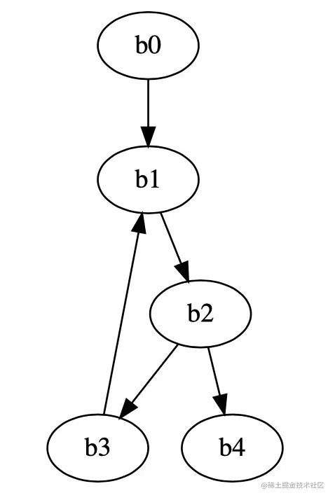 如您所见:块b0中的循环前有代码,b1中的循环头,b2中的循环测试,b3中的循环主体,b4中的退出节点。从这个例子翻译成机器代码非常容易,将iXX替换为CPU寄存器名称(就像前文在 ATMEL 手册上查到的寄存器地址),并为每个指令逐行生成机器代码。