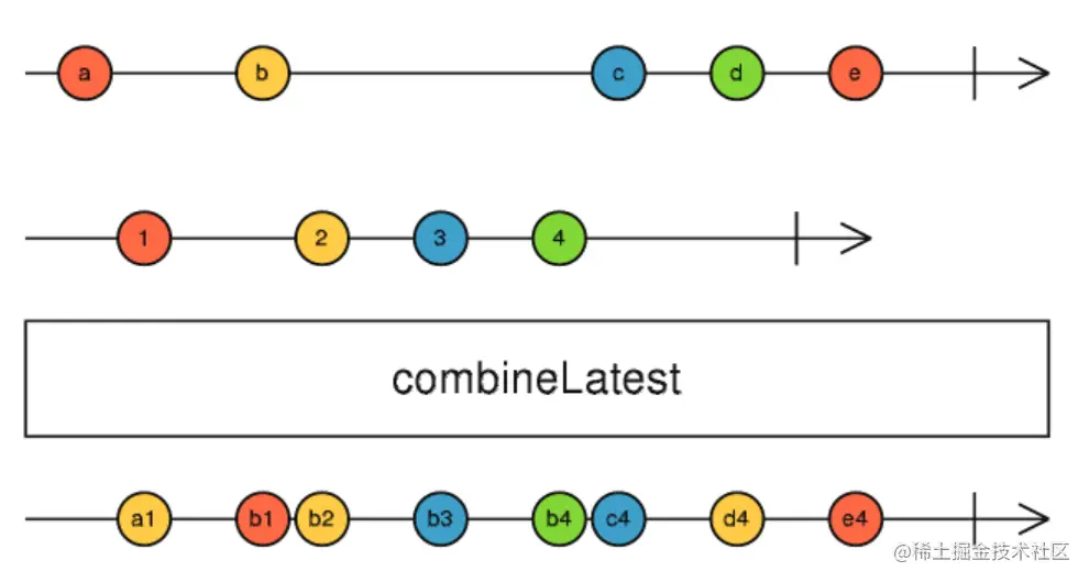 这意味着,当 combineLatest 在同一个调用堆栈中发出两个值时,当调用堆栈被清除时,最后一个值将被发送。