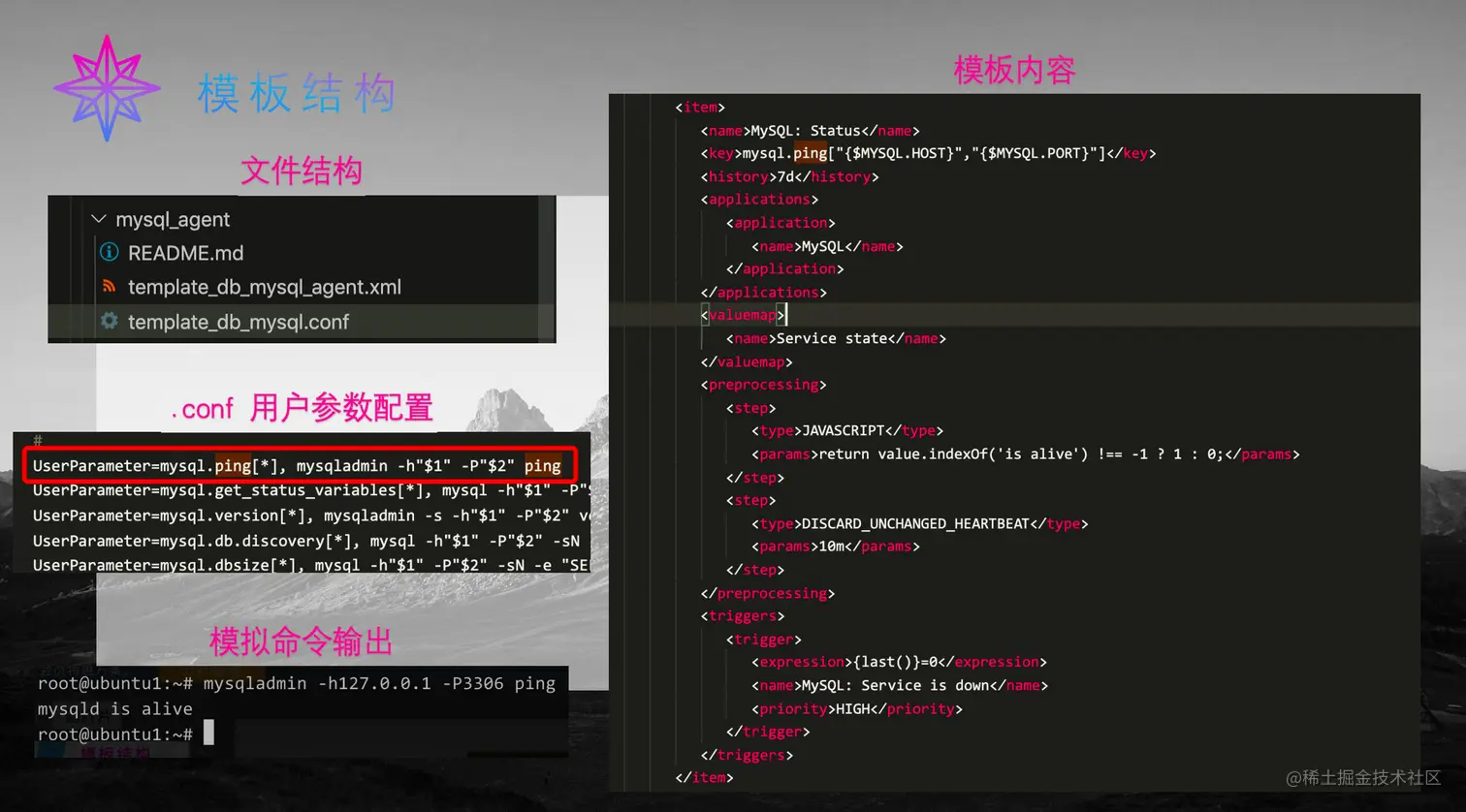- 当添加(自动发现)一个 host,并且为 host 添加对应的模板的时候,Portal 会解析出来对应的 item, preprocess,trigger 然后放在对应的 Db 表里面。