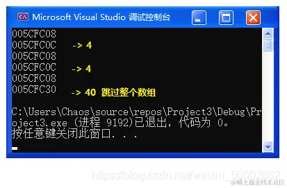 printf("%p\n", &arr + 1); // +1,以整个元素为单位