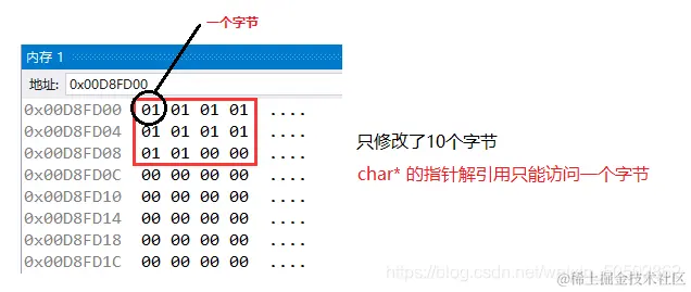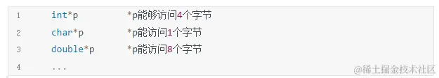 ② 譬如,char* 的指针解引用只能访问1个字节,而 int* 的指针解引用就能够访问4个字节