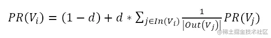 其中,PR(Vi)表示结点Vi的rank值,In(Vi)表示结点Vi的前驱结点集合,Out(Vj)表示结点Vj的后继结点集合。