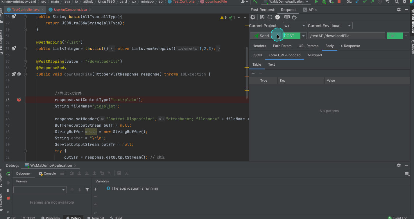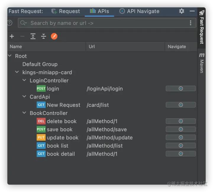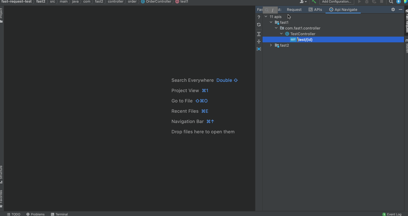 Fast Request 是一个基于springmvc、springboot的帮助你快速生成url和参数的IDEA插件。同时也是一个http client工具,你只需要按一下方法左侧的小图标(小火箭),插件就会帮你生成方法的url和参数显示在工具内,再点击发送请求即可在IDEA内完成API调试,并且可以保存历史请求,方便再次使用调试。