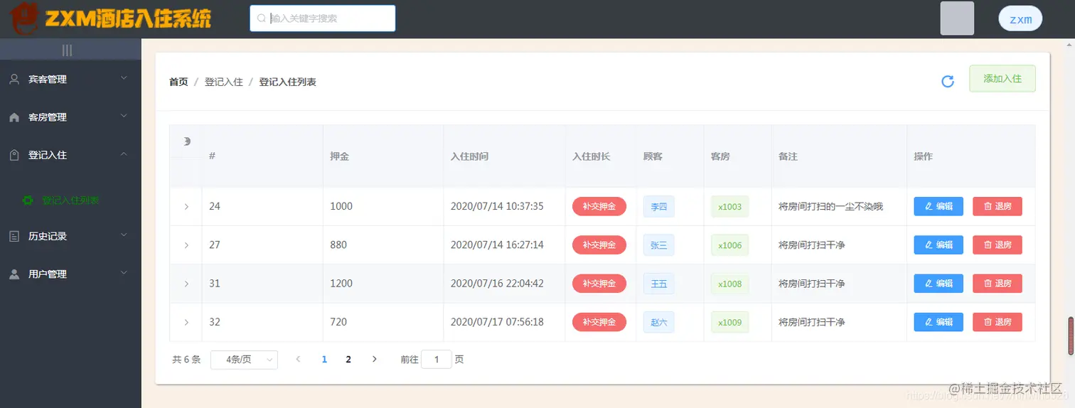 客人登记入住: