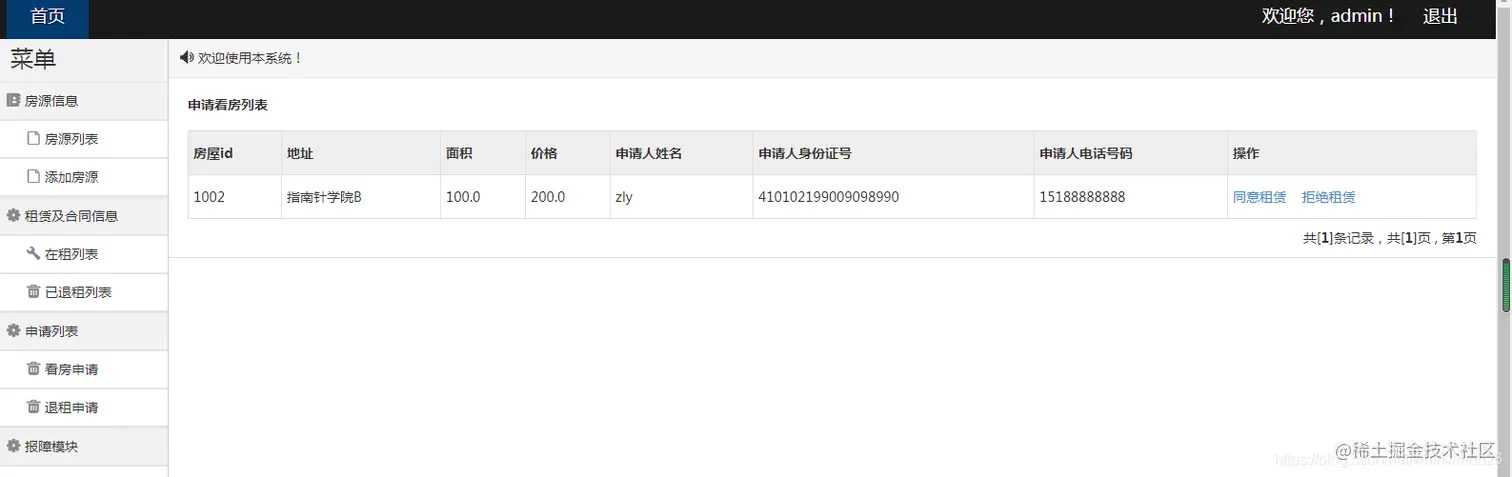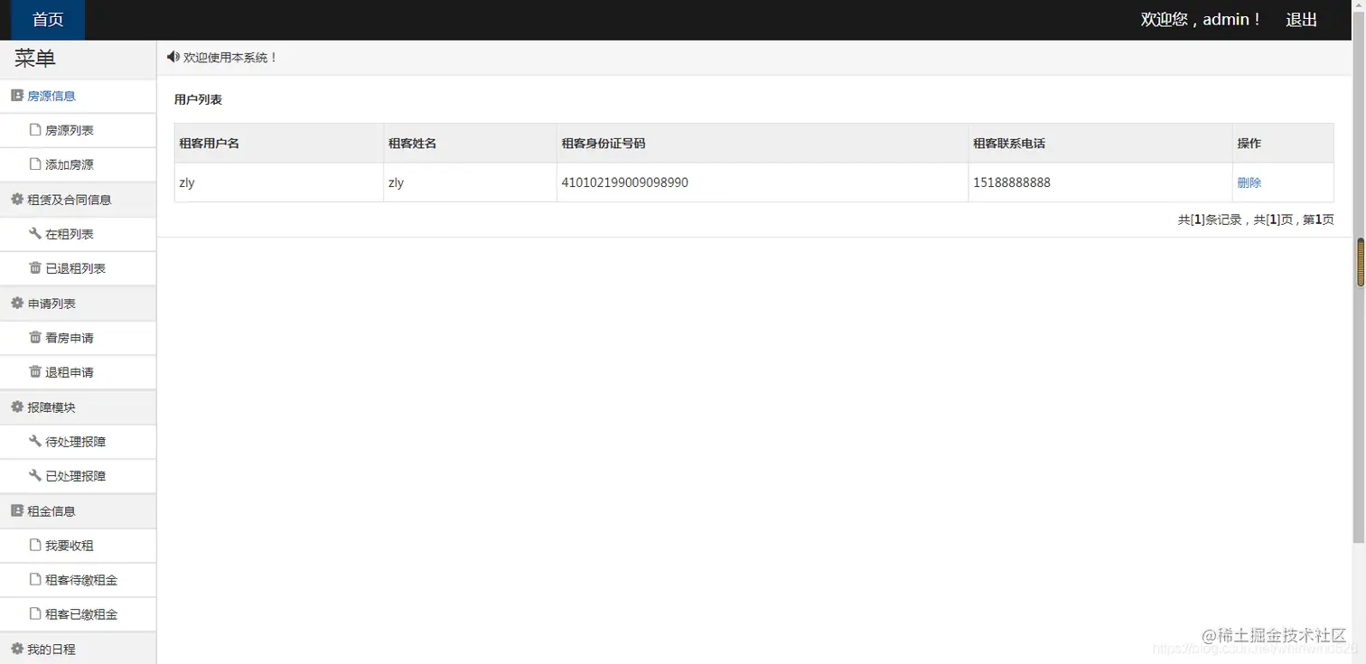 本系统主要有两个角色,一个是物业管理员,一个是租赁方: