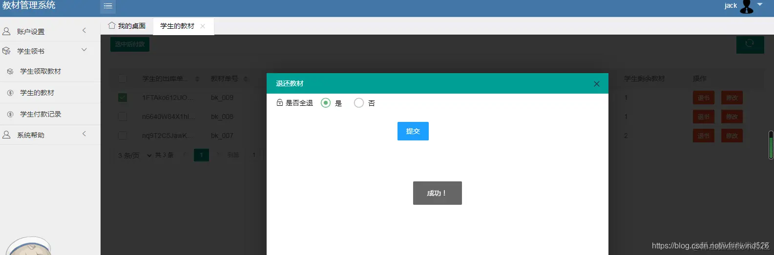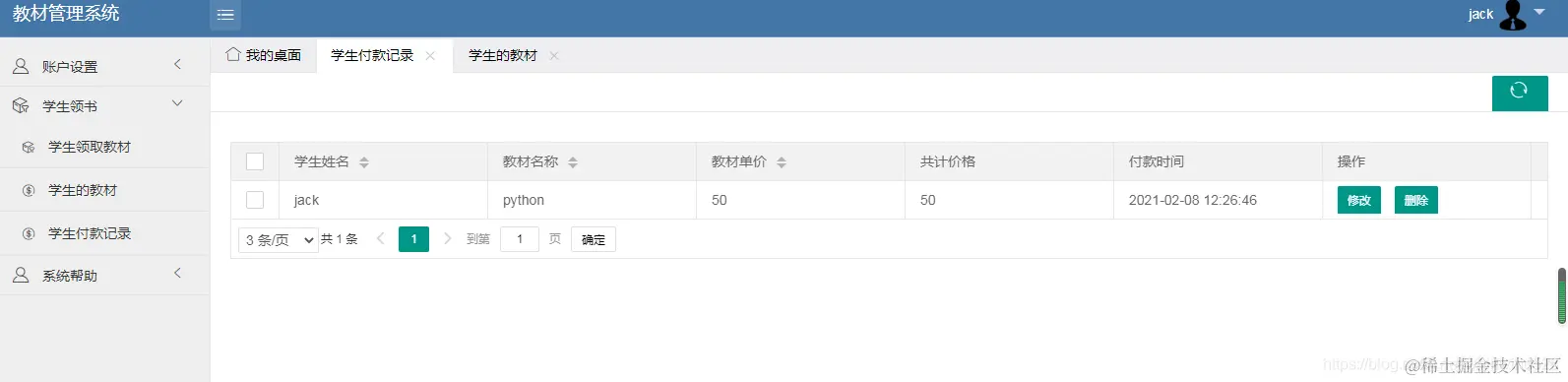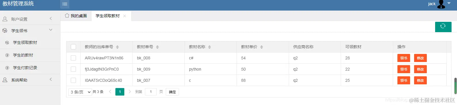 学生登陆系统: jack / 123