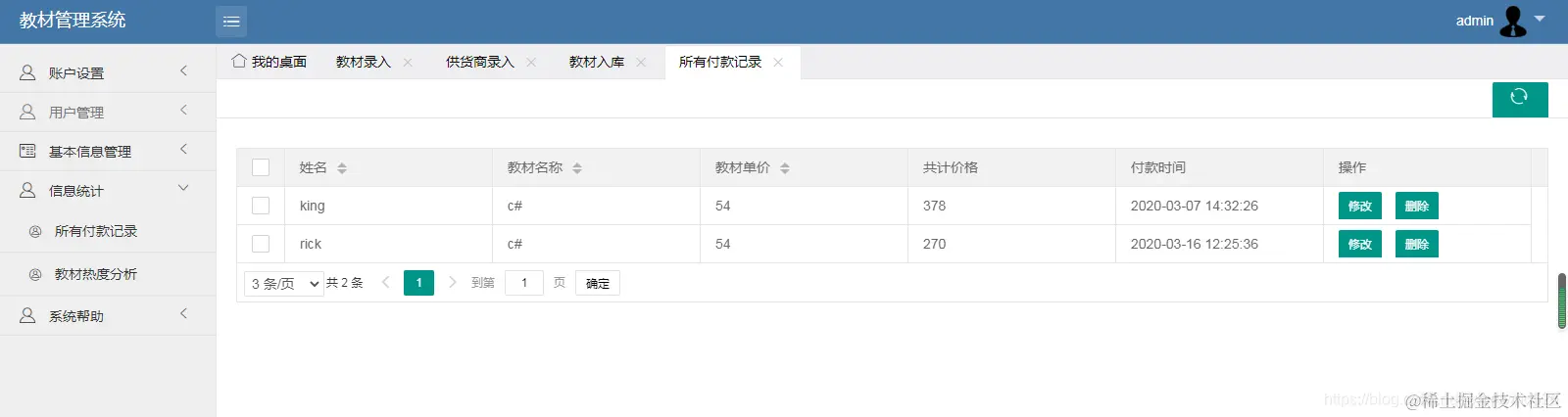 付款记录管理: