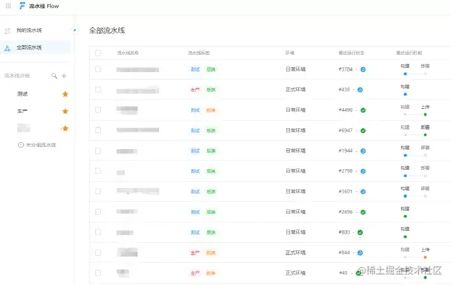 以下是流水线的列表页面,可以自定义表头来展示运维人员关心的字段。